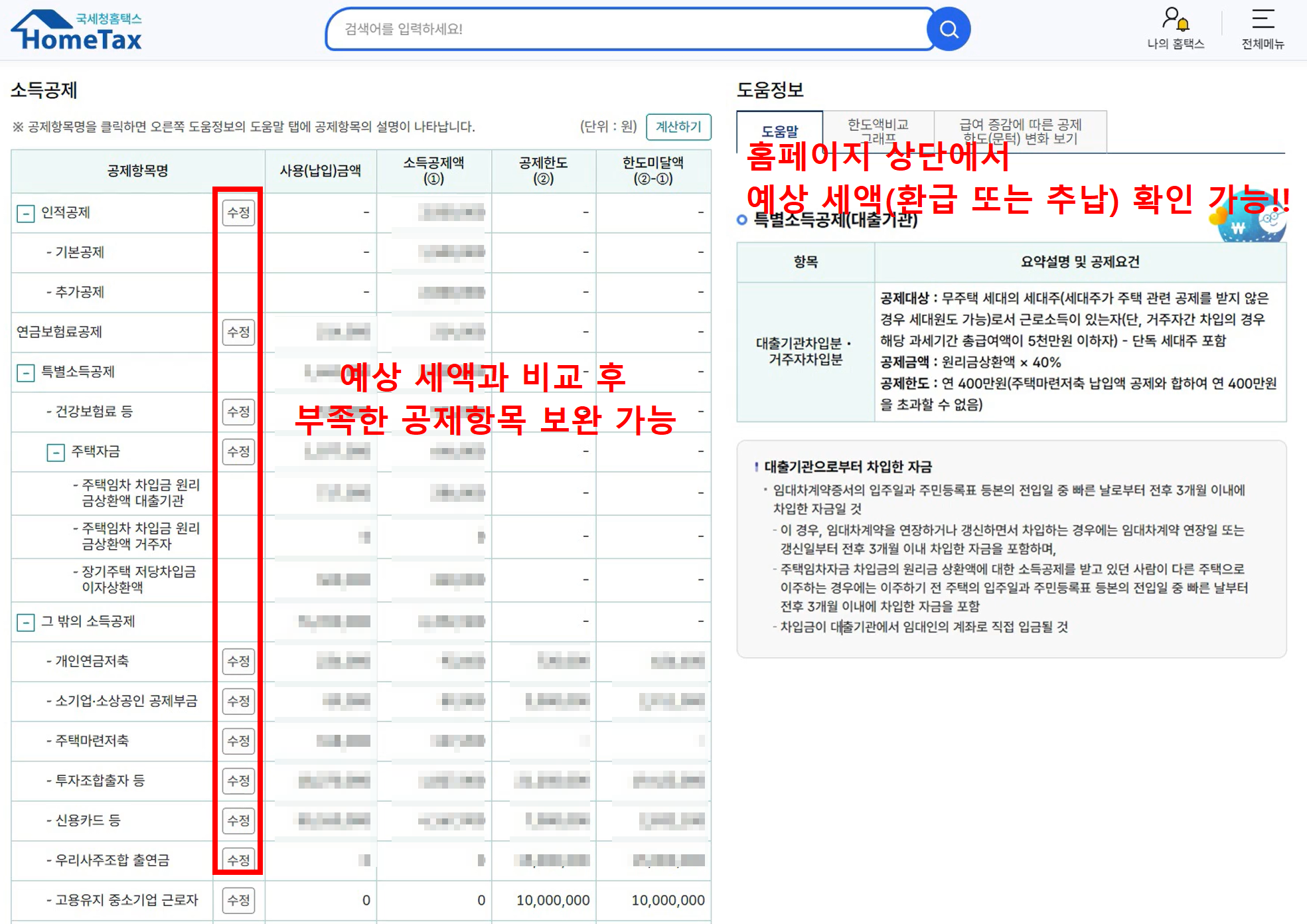 내 소득과 지출, 각종 공제 항목을 기준으로