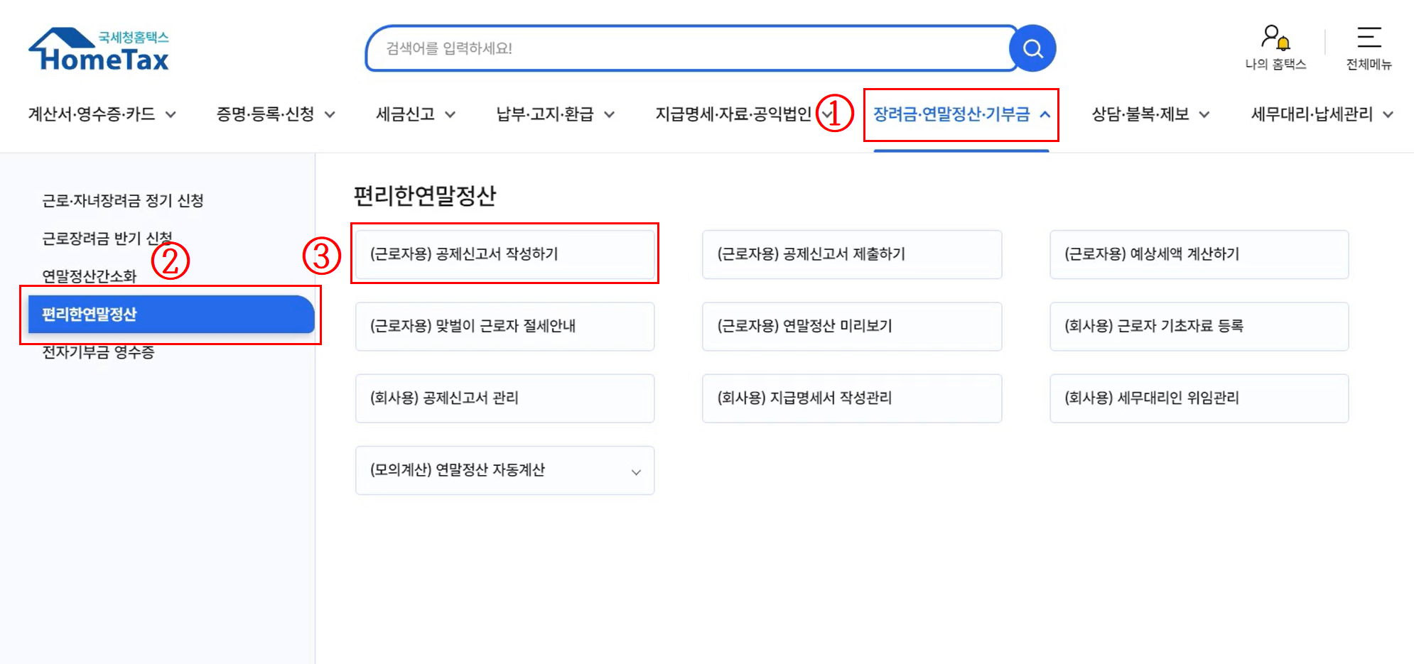 ➡ ③ (근로자용) 공제신고서 작성하기 선택